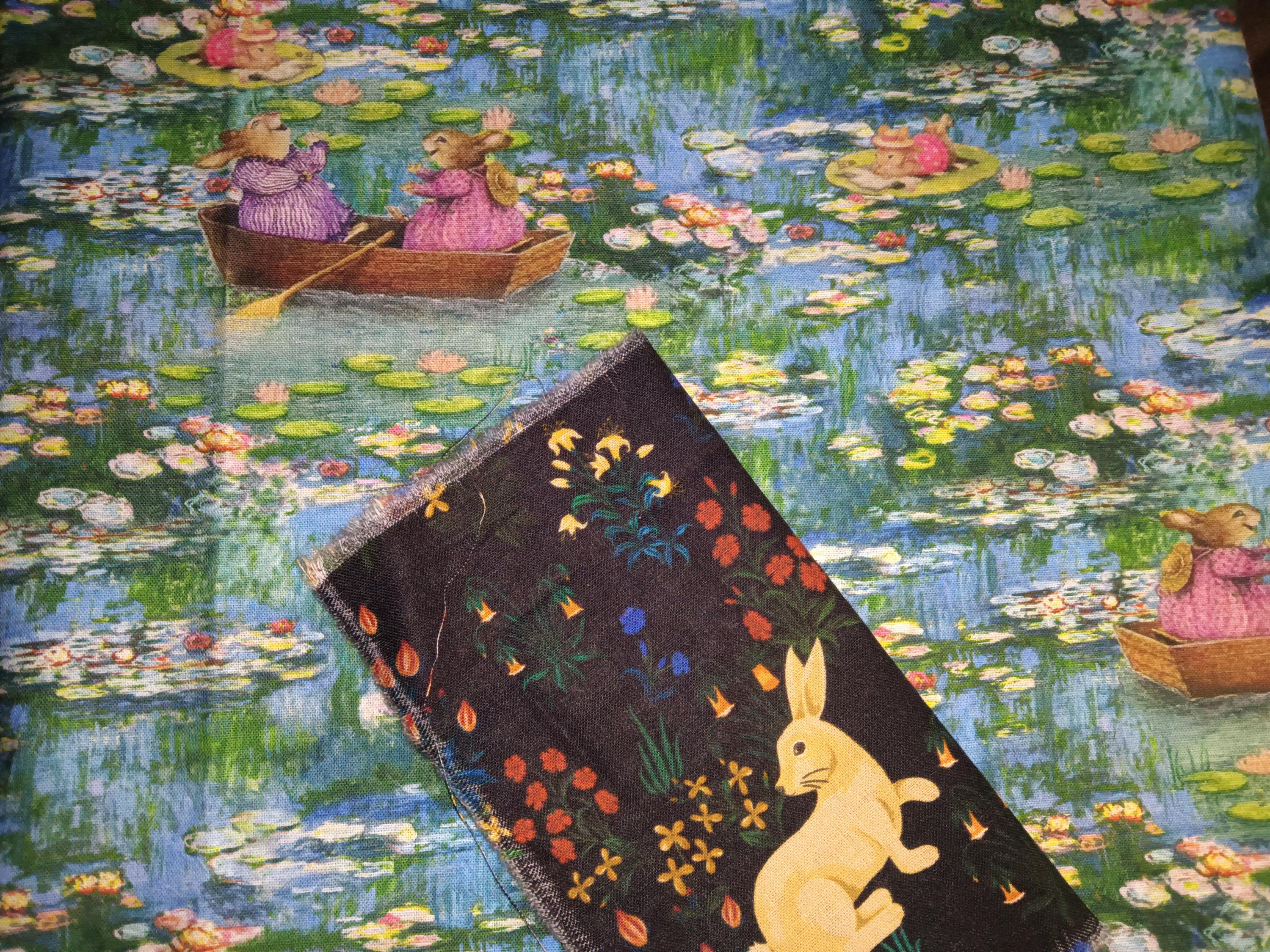 2 Colours Vintage Impressionist Oil Painting Calico 100% Cotton Boating Rabbit Limited pattern Fabric by the yard Fabric by the quarter