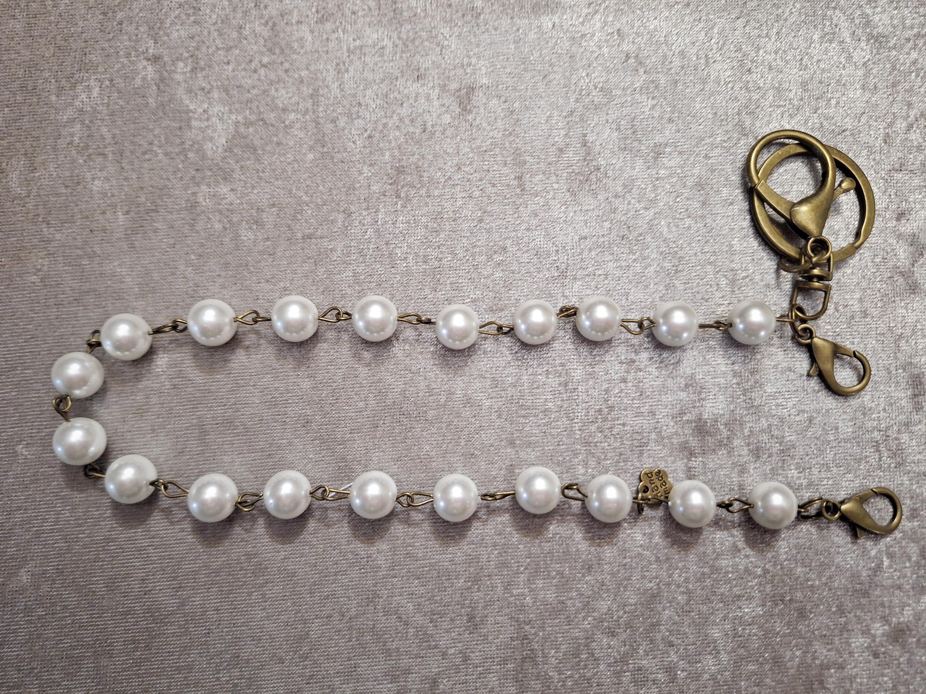 💕Handmade Imitation Pearl Beaded Strap and Metal Chain with Lobster Clasp