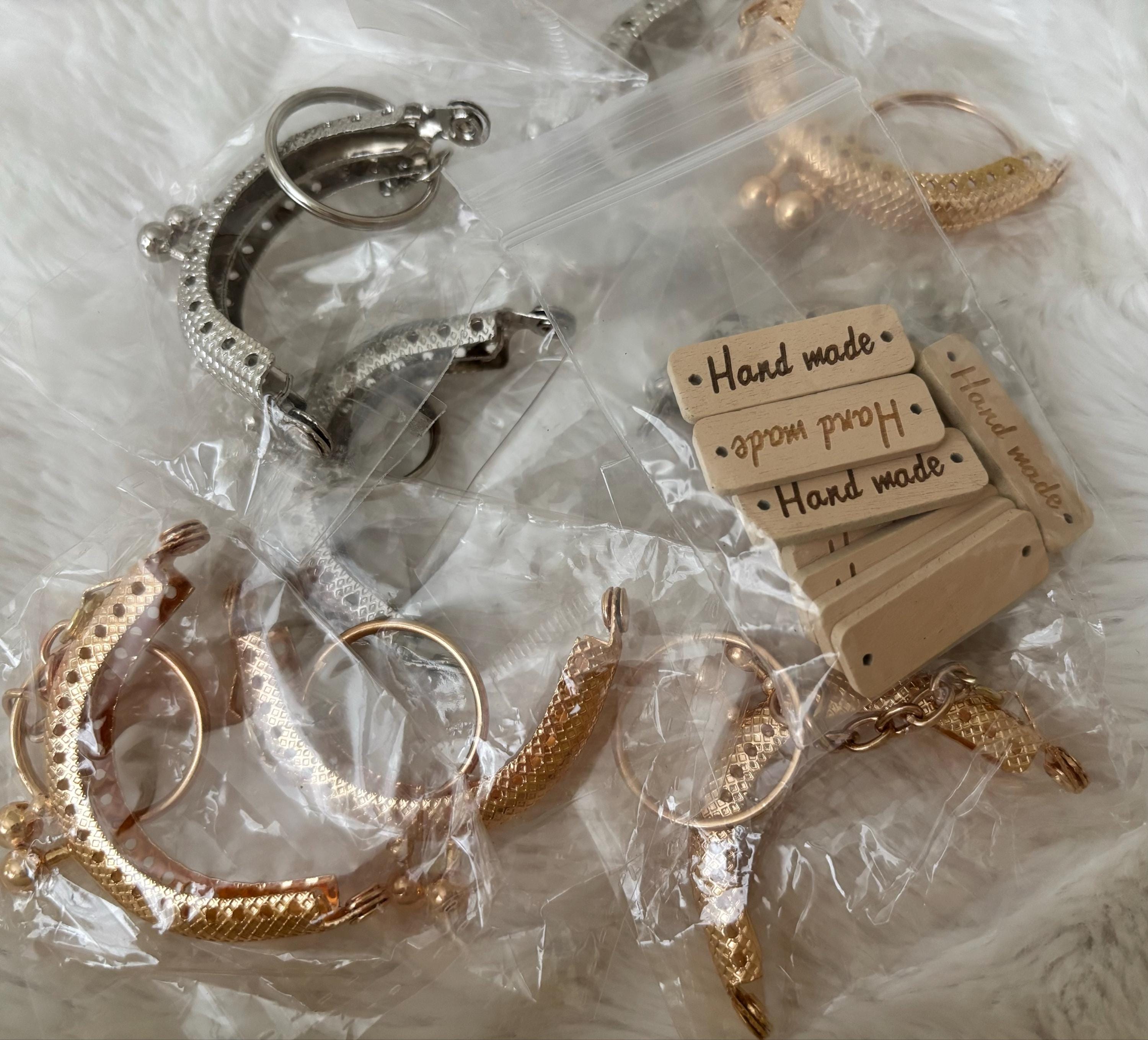 2'' (5.5cm) Sew on kiss lock purse frame has a keyring on it.